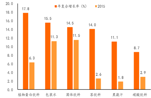 飲料子行業(yè)近五年 CAGR及 2015年增速