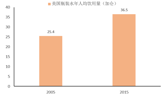 十年來美國瓶裝水人均消費量增長情況