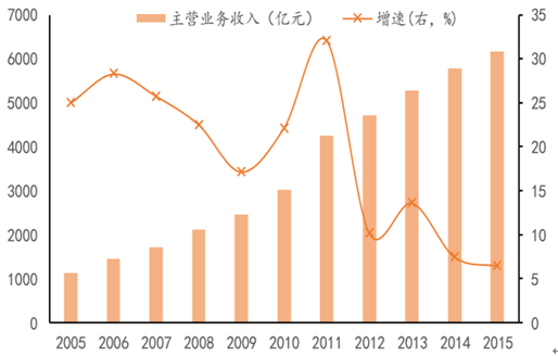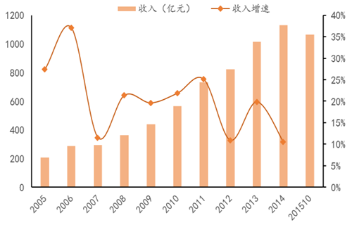 2005-2015我國軟飲料行業(yè)收入及增速