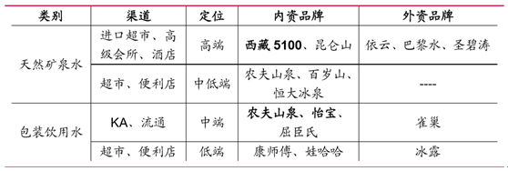 瓶裝水分類及對應主要公司分布 類