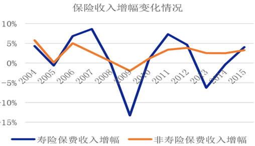 2008 年經(jīng)濟危機以來,臺灣保險業(yè)受 到一定沖擊,但基本維持著 5%左右的增速,高于近年來 3%左右的經(jīng)濟增長率。2011 年, 由于地區(qū)推行“全民年金”政策,商業(yè)性個人年金銷售受到較大影響,銷量大幅下滑,導(dǎo)致壽 險收入大幅下滑,影響了總體臺灣保險業(yè)發(fā)展情況。相比之下,臺灣財險整體發(fā)展則保持相 對穩(wěn)定的增幅。