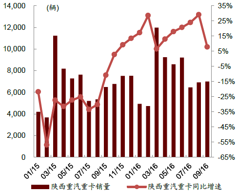 核心提示:自今年2 月以來,重卡已經連續8 個月同比正增長,其中8月增速更是創下今年以來新高,同比增長達到44.2%。2016 年1-9 月累計銷量達到49萬輛,同比增長20%,重卡的全面復蘇已無疑問。2015-2016年中國重卡月度銷量 重卡銷自今年2 月以來,重卡已經連續8 個月同比正增長,其中8月增速更是創下今年以來新高,同比增長達到44.2%。2016 年1-9 月累計銷量達到49萬輛,同比增長20%,重卡的全面復蘇已無疑問。