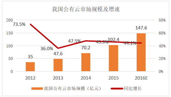 我國公有云市場規模及增速