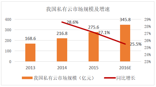 我國私有云市場規模及增速