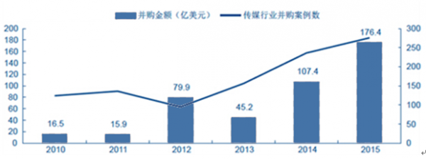 2016年中國(guó)傳媒市場(chǎng)并購(gòu)規(guī)模分析