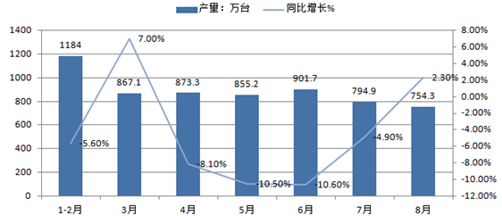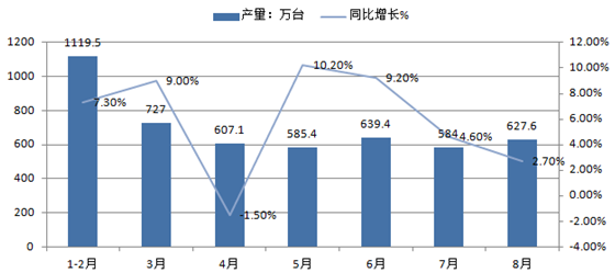 二、1-8月,房間空氣調節器產量統計情況分析