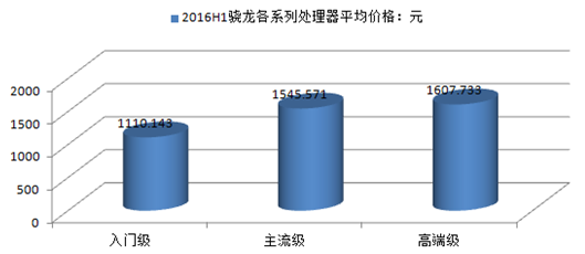 價 格方面驍龍400處理器手機均價為1321元,驍龍600處理器手機平均值已經突破2000元,高端的驍龍800系列則接近2988元,這與國內動則 1999元起買驍龍820的印象不同的原因有二,國際品牌驍龍820手機拉升了產品均價,另一方面各個手機的旗艦版大容量版本也是提升均價的主要因素。