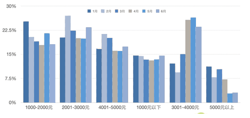 前兩年千元機還是市場的寵兒,隨著換機市場出現增量,如今即便千元機都做到了旗艦配置,1000 元及以下手機的關注度已經不足15%。消費者的關注度均衡聚焦在1000-2000元、2001-3000元、3001-4000元以及 4001-5000元等價位更高的產品上,贏取了市場近80%的關注度。
