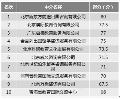 2015年中國自費留學中介服務機構排名統(tǒng)計