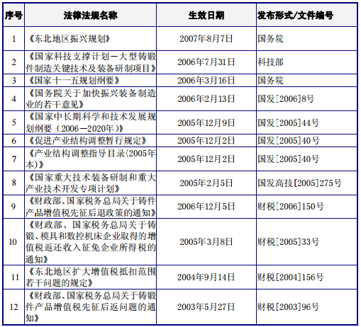 大型鑄鍛件行業目前的主要法律法規和政策