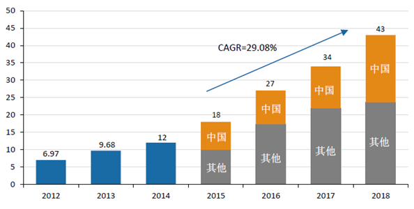 2014年全球家務機器人銷售額達到12億美元,同比增長24%。預計2015到2018年期間,銷售額可以累計達到122億美元。2014年全球家務機器人銷量達到330萬,比2013年274萬增長了20.4%。預計2015年到2018年期間,家務機器人的銷量將會爆發性增長,累計銷量達到2590萬。同時,根據GFK數據,2015年中國掃地機器人市場零售規模在50億元人民幣左右,這一數字在2017年將達到75億元人民幣,2018年則將增長至120億元人民幣。掃地機器人市場空間巨大。結合這兩個知名專業機構的統計預測數據,可以看出,未來掃地機器人市場空間將呈大幅度增長態勢,同時中國市場也將成為掃地機器人放量的主戰場。