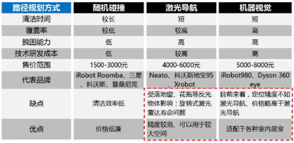 核心提示:清潔效率、便利性是衡量掃地機器人性能的重要指標,因此能夠自主導航避障、高效清潔目標區域,是掃地機器人發展的必然趨勢,目前幾乎所有掃地機器人廠商都在開發自主導航式的掃地機器人。當前實現自主避障&規劃路線的技術路徑主要有2類,一類是采用機器視覺清潔效率、便利性是衡量掃地機器人性能的重要指標,因此能夠自主導航避障、高效清潔目標區域,是掃地機器人發展的必然趨勢,目前幾乎所有掃地機器人廠商都在開發自主導航式的掃地機器人。當前實現自主避障&規劃路線的技術路徑主要有2類,一類是采用機器視覺技術,一類采用激光雷達導航技術,由于兩類技術各具優缺點,未來有可能根據特點適用于不同場合,共同引領行業未來。
