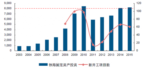 鐵路固定資產投資和新開工項目數在“十二五”期間持續增長