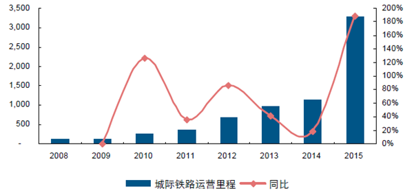 2015-2017 年城際鐵路運營里程復合增速達32%