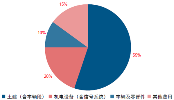 從成本結構來看,軌交項目中機電設備和車輛合計約占30%左右