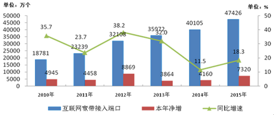 核心提示:2015年,互聯網寬帶接入端口數量達到4.7億個,比上年凈增7320.1萬個,同比增長18.3%。互聯網寬帶接入端口“光進銅退”趨勢更加明顯,xDSL端口比上年減少3903.7萬個,總數降至9870.5萬個,占互聯網2015年,互聯網寬帶接入端口數量達到4.7億個,比上年凈增7320.1萬個,同比增長18.3%。互聯網寬帶接入端口“光進銅退”趨勢更加明顯,xDSL端口比上年減少3903.7萬個,總數降至9870.5萬個,占互聯網接入端口的比重由上年的34.3%下降至20.8%。光纖接入(FTTH/0)端口比上年凈增1.06億個,達到2.69億個,占比由上年的40.6%提升至56.7%。