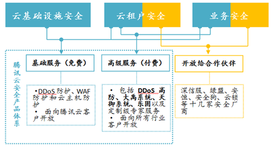 騰訊云安全一部分由騰訊自己負責,一部分開放給合作伙伴