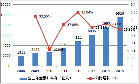 資產項目基金收入基金支出征繳收入各級財政補貼個人繳費累計結存全年五項社會保險(含城鄉居民基本養老保險)4601238988----全國基本養老保險321952792923717--39937城鎮職工基本養老保險2934125813230164716-35345城鄉居民基本養老保險28552117--7004592城鎮基本醫療保險111939312---8114失業保險1368736---5083工傷保險754599---1285生育保險502411---6842008-2015年,城鎮職工基本養老保險企業年金規模逐年增加。2015年,企業年金基金累計結存9526億元,相比上年增長23.89%。