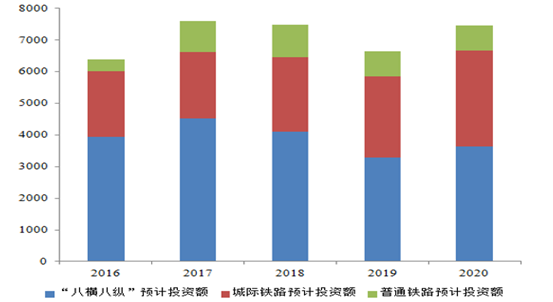 2016-2020 普通鐵路預(yù)計(jì)投資額(億元)
