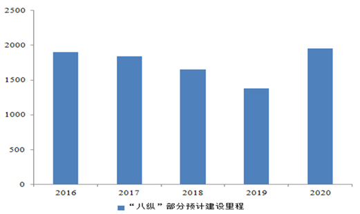2016-2020“八縱”部分預(yù)計(jì)建設(shè)里程(公里)