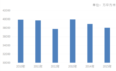 在國家對房地產市場實施最嚴厲的調控政策后,房地產投資大幅度下滑,新開工面積、房屋竣工面積、房地產企業土地購置面積、土地成交價款全面下滑,下滑幅度達到 20 個百分點以上,直接影響建筑工程新開工面積, 2015 年比 2014年新開工面積減少了 16.7%。