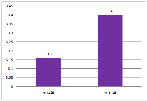 2014-2015年建筑裝飾行業完成工程總產值 (單位:萬億元)