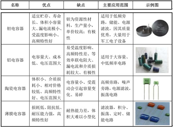 ② 根據(jù)材質(zhì)不同,電容器產(chǎn)品主要可分為鉭電容器、鋁電容器、陶瓷電容器、和薄膜電容器等,各類型電容器的情況具體如下: