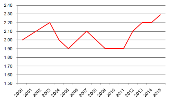 日本干酪年人均消費(fèi)量單位:kg