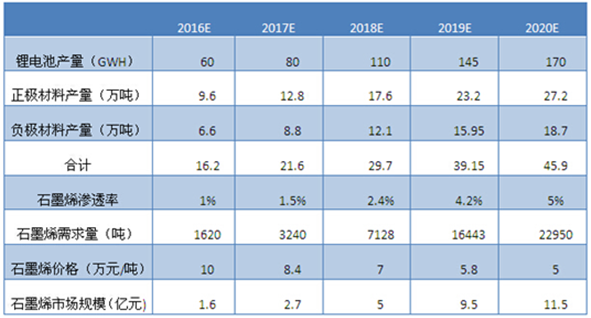 2016-2020年鋰電池領(lǐng)域石墨烯市場規(guī)模預測
