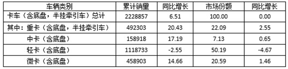2016年1~9月我國卡車細分市場銷售情況表 單位:輛,%