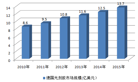 2010-2015年德國地區光刻膠市場規模走勢圖