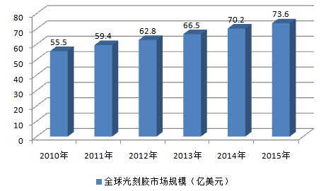 據統計:全球光刻膠市場規模從2010年的55.5億美元增長至2015年的73.6億美元。