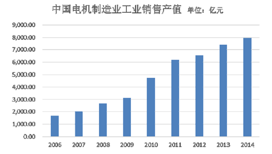 隨著我國國民經(jīng)濟的快速發(fā)展,我國電機制造業(yè)的銷售產(chǎn)值持續(xù)快速增長。根據(jù)中經(jīng)網(wǎng)統(tǒng)計,2007 年我國電機制造業(yè)的產(chǎn)品銷售收入約為1,968.45 億元,2014 年產(chǎn)品銷售收入達到7,948.08 億元,年復(fù)合增長率約為21.43%。