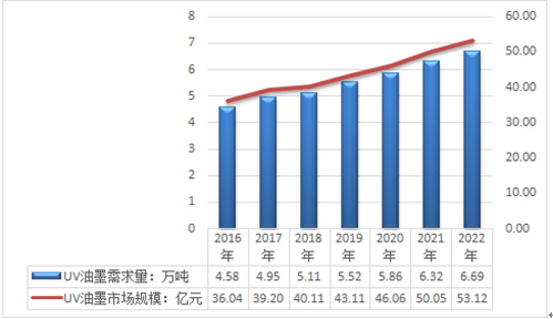 2016-2022年我國UV油墨行業(yè)市場容量預(yù)測