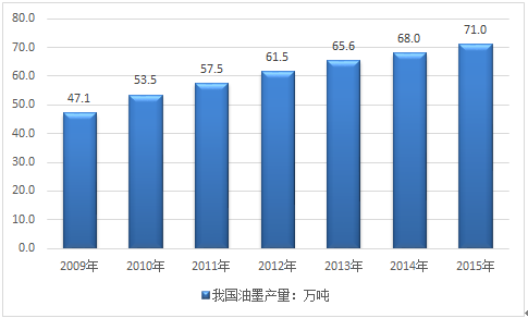 2009-2015年我國油墨產(chǎn)量走勢圖