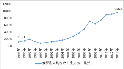 1995-2013年俄羅斯人均醫(yī)療衛(wèi)生支出