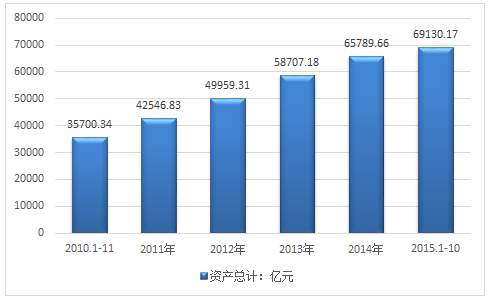 2010-2015年10月我國食品行業資產走勢圖