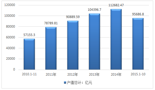 2011-2015年10月我國食品行業總產值走勢圖