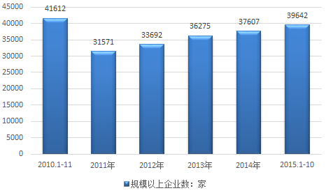 2010-2015年10月我國食品行業規模以上企業數量分析