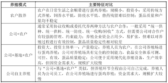 核心提示:(1)行業特有的經營模式中國蛋雞養殖模式主要包括散養模式和籠養(規模養殖)模式,按養殖主體區分,規模養殖模式又包括“公司+農戶”、“公司+基地+農戶”、自主養殖的模式。目前行業內存在的(1)行業特有的經營模式