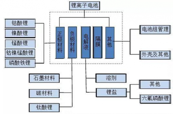 鋰電池材料主要由正極材料、負極材料、隔膜和電解液四大材料組成,此外還有電池外殼。
