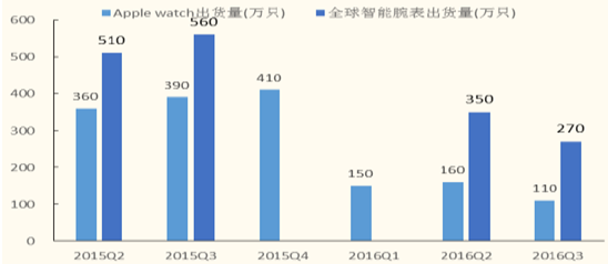 年份Total0-200200-500500-30003000+2010580623241,3217,8332012693673111,2748,2922013733703071,2548,4242014734683121,2258,4212015719663161,21985232016.1-9724673141,2138,106全球智能腕表 /Apple watchApple出貨量