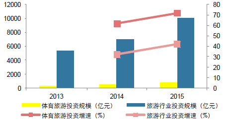 核心提示:隨著全民體育與旅游休閑的興起、體育產業和旅游產業跨界融合,集觀賞性和體驗性于一體的體育旅游越來越受到游客的青睞,市場發展與投資前景廣闊。根據世界旅游組織數據,全球體育旅游產業正在以每年14%的速度增長,成為旅游市場中增長最快的旅游業態;而我隨著全民體育與旅游休閑的興起、體育產業和旅游產業跨界融合,集觀賞性和體驗性于一體的體育旅游越來越受到游客的青睞,市場發展與投資前景廣闊。根據世界旅游組織數據,全球體育旅游產業正在以每年14%的速度增長,成為旅游市場中增長最快的旅游業態;而我國的數據則更為驚人,根據國家旅游局測算,我國體育旅游產業目前正以30%~40%左右的年均速度增長。體育旅游領域投資增速近兩年高達60%以上,遠超同期行業投資增速也從側面印證了這點。2015年我國體育旅游市場規模約為2065 億元,若按此速度,到2020 年我國體育旅游產業規模有望達到7600~1.1 萬億元,市場發展空間巨大。