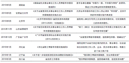 2015 年以來部分地方政府落實帶薪休假制度政策摘錄