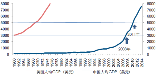 我國人均GDP 處于美國上世紀70 年代末期水平