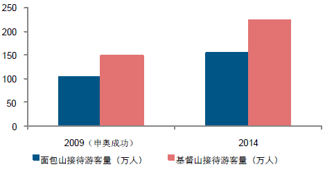 參與型體育旅游產業發展態勢強勁。僅以細分領域滑雪為例,萬科滑雪事業部發布《中國滑雪產業白皮書》顯示,2015 年國內滑雪人口已經達到1250 萬且目前正以21.4%的速度增長;加上北京和張家口聯合申辦2022 年冬季奧運會成功,未來中國滑雪市場發展將迎來新的契機。同樣,國內多地馬拉松比賽報名人數遠超參賽人數、高爾夫也發展的如火如荼,參與型體育旅游增速迅猛。