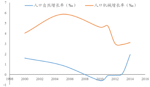 長春市人口于 2008 年突破 750 萬人,在東北區(qū)域僅次于哈爾濱。2011 年以來,長春戶 籍人口停止增長并出現(xiàn)回落,城鎮(zhèn)化水平也因此穩(wěn)定在 44%左右的中等 區(qū)間。從人口變化因素來看,長春人口自然增長率穩(wěn)定,自 2010 年來 的人口持續(xù)遷出是造成人口停止增長并回落的主要原因。這也是長春產(chǎn) 業(yè)落后對人口吸引力不足的結(jié)果。