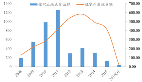 哈爾濱新增住宅土地成交面積和開發(fā)投資額自 2013 年起一直處于下行狀 態(tài)。2016 年 1 季度數(shù)據(jù)顯示,哈爾濱新成交住宅土地總面積為 38.13 萬 平米,與 2015 年總的 133.09 萬平米的 1/4 相近,意味著哈爾濱 2016 年 地產(chǎn)開發(fā)端并未出現(xiàn)“開年紅”。而從成交土地的樓面均價來看,2015 年 5 月以來哈爾濱新成交土地樓面均價始終在 1500 元/平米上下波動,未 出現(xiàn)明顯的上漲趨勢,因此判斷 2016 年哈爾濱房地產(chǎn)供給端難 以出現(xiàn)較大改善。