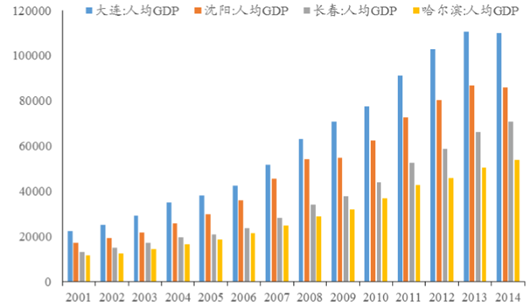 大連人均 GDP 水平東北第一,遙遙領(lǐng)先于其他三城