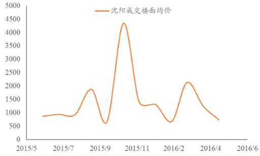 從拿地面積、和開 發(fā)投資額來看,房地產(chǎn)開發(fā)商對沈陽投資熱情較低。2016 年一季度,沈 陽住宅土地僅成交 75.83 萬平米,未出現(xiàn)明顯回暖跡象。從成交土地樓 面均價而言,2016 年以來僅在沈陽“二十二條”出臺前后有小幅上揚,可見政策刺激并未有限激起開發(fā)商的拿地?zé)崆椤?/p>